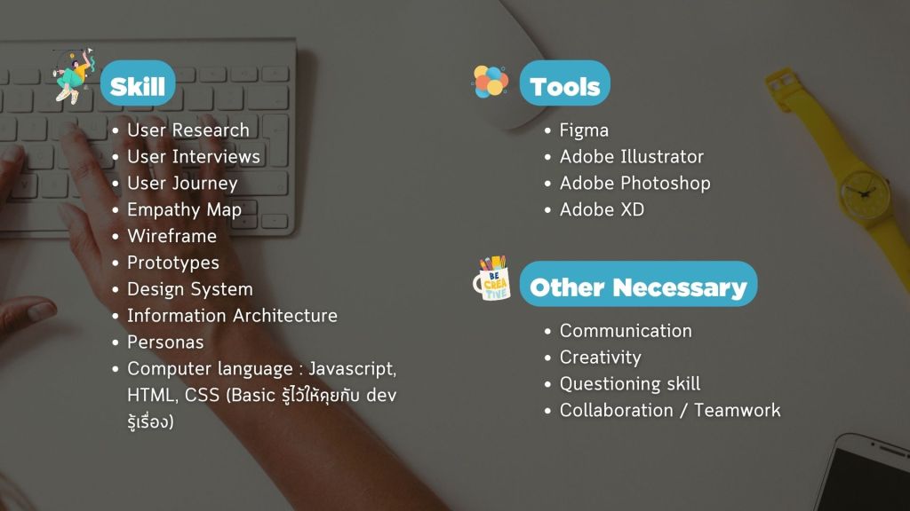 require : Adobe photoshop, illustrator, Figma, ภาษาคอมพิวเตอร์ C, JavaScript, CSS