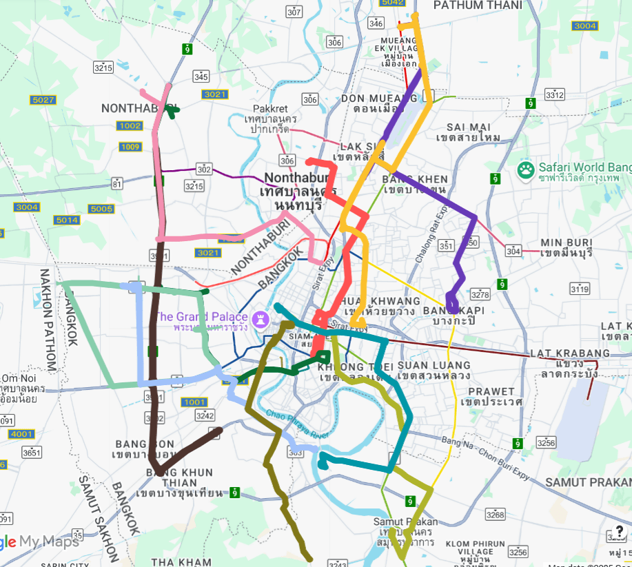 ทำตามวิธีทั้งหมดนี้ก็จะได้เส้นทางรถเมล์เส้นที่สอง ตามรูปด้านล่างเลย